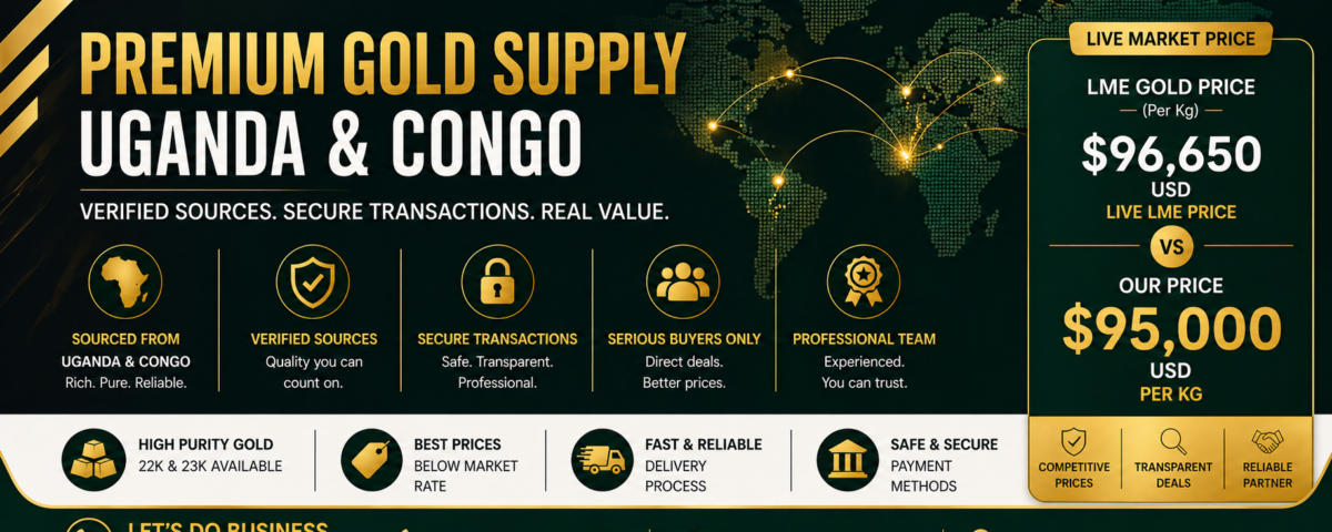 we sale gold to retail customers, investors, jewellers, and sometimes other dealers. we are a licensed company with legal documents from the government of Uganda. we distribute gold around the world with no conditions attached.